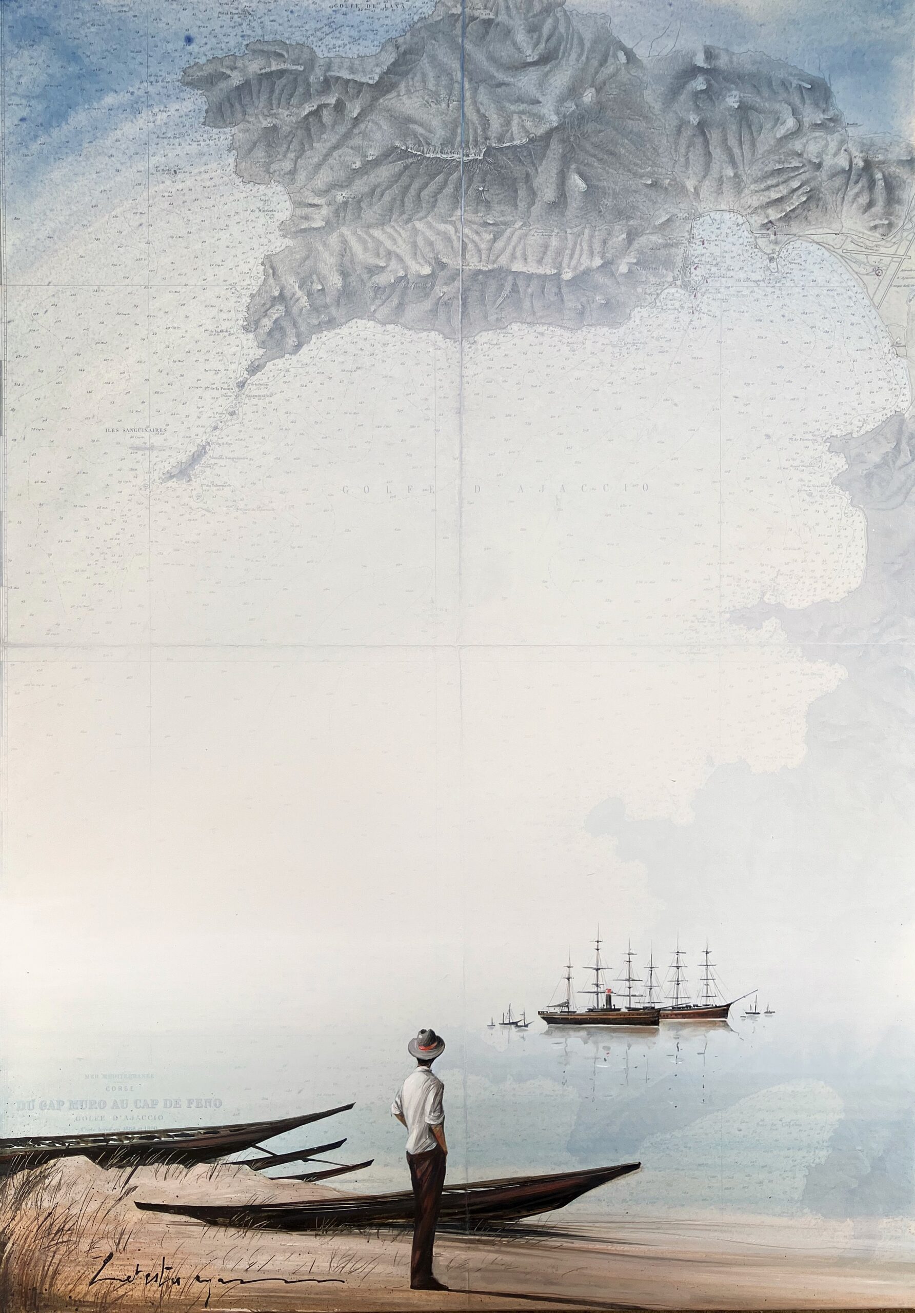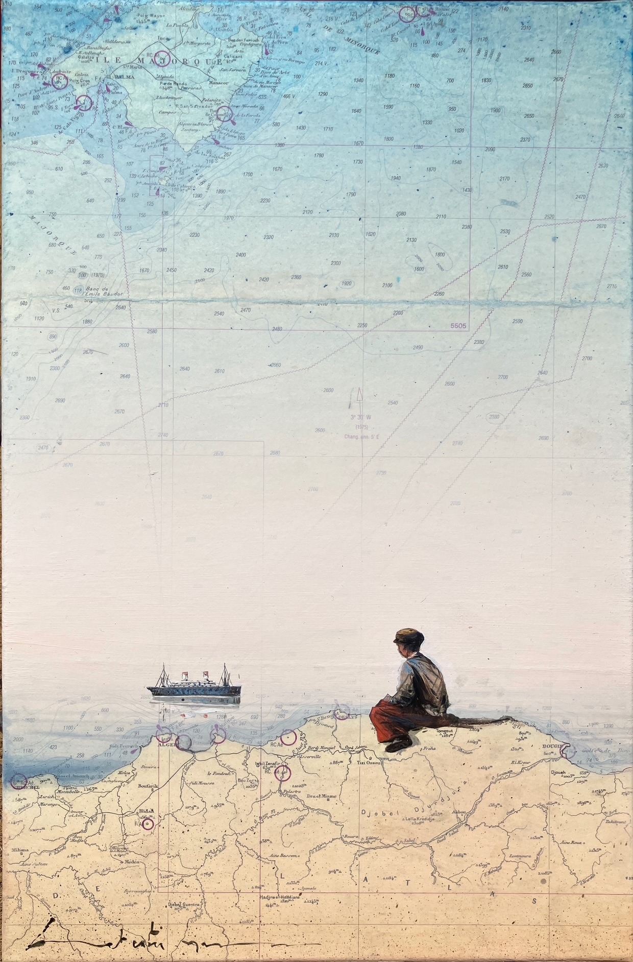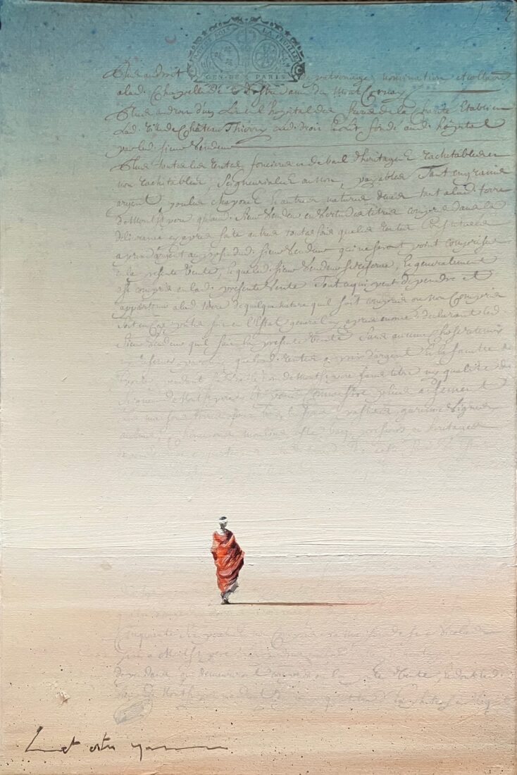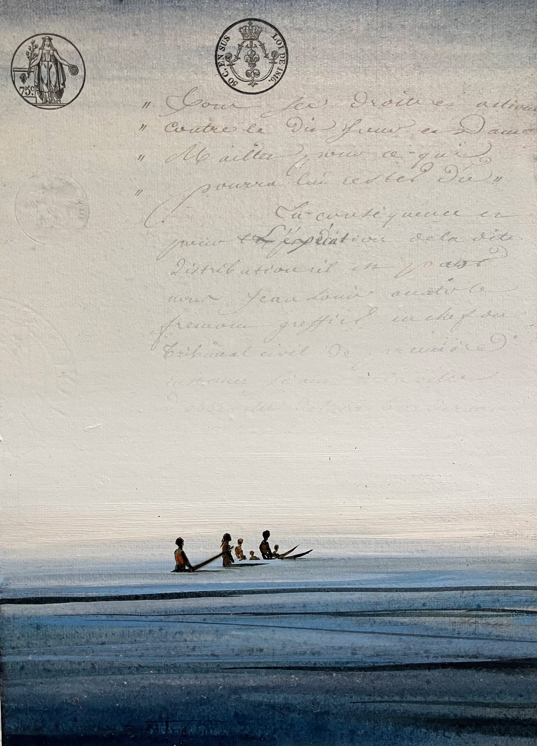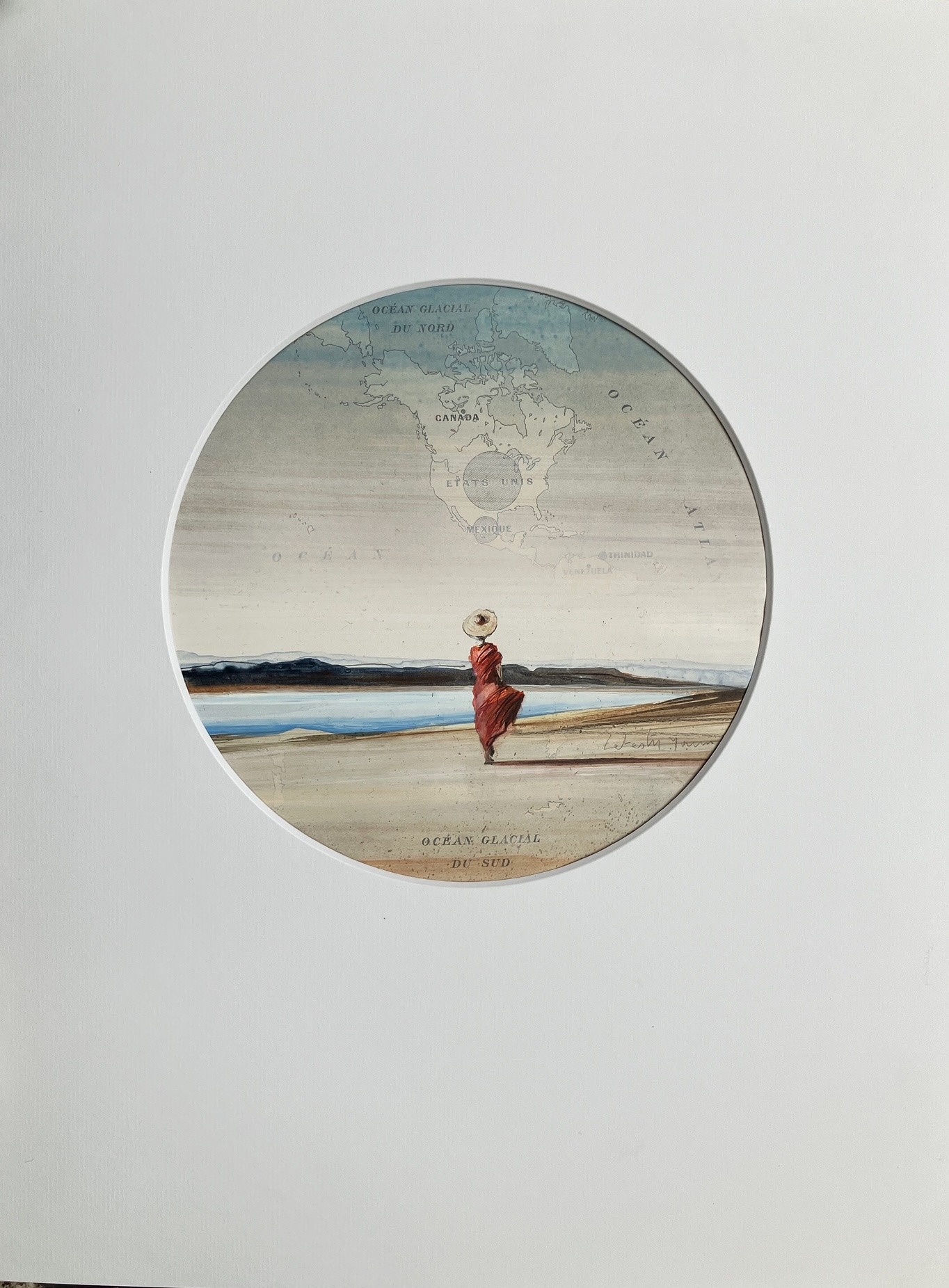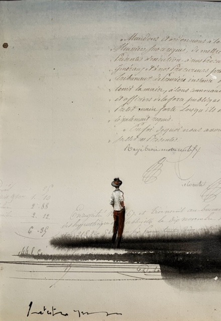 Technique mixte sur papier ancien 30×40cm avec passe-partout