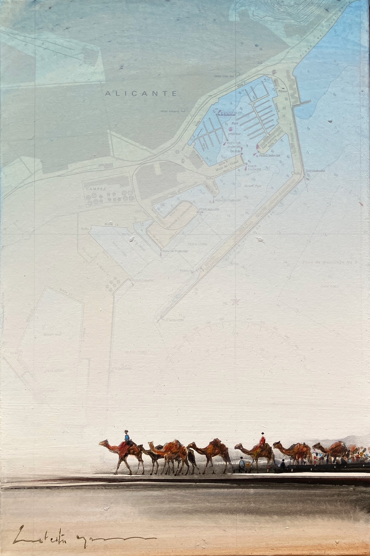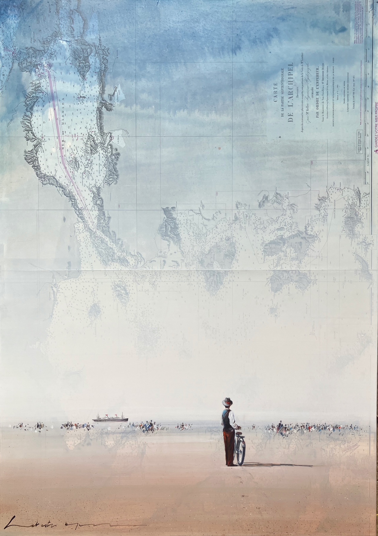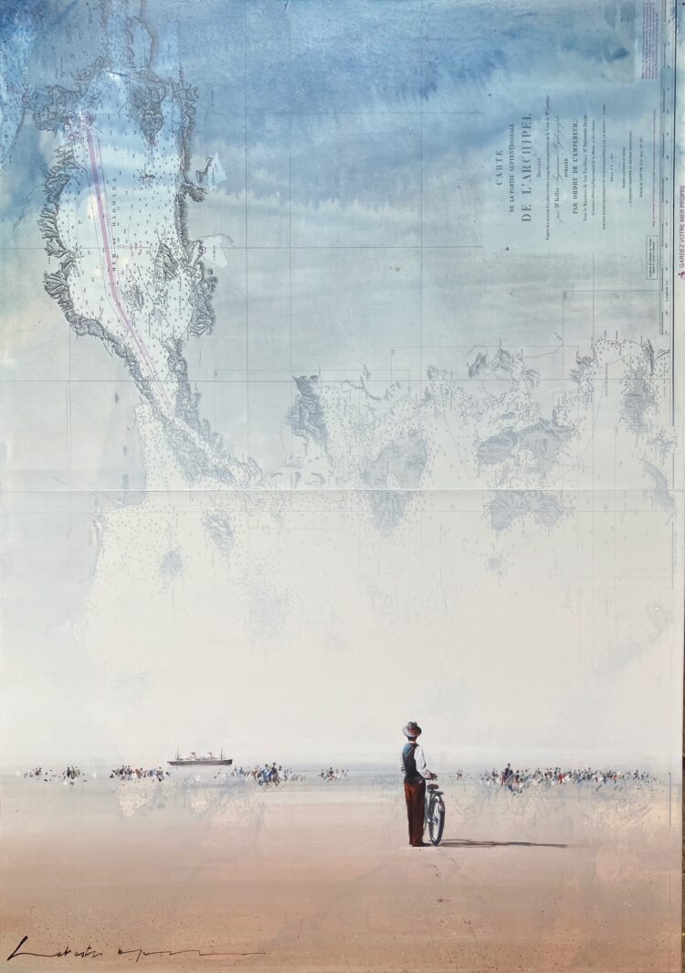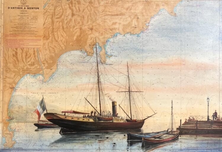 Technique mixte sur carte marine, marouflée sur toile.