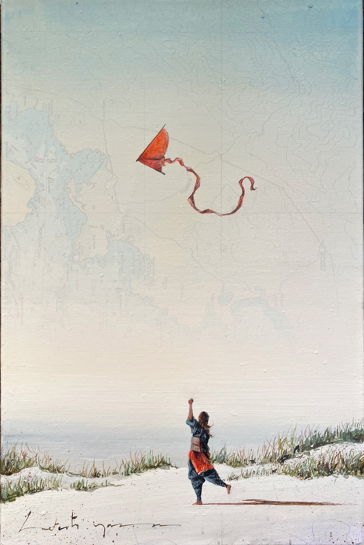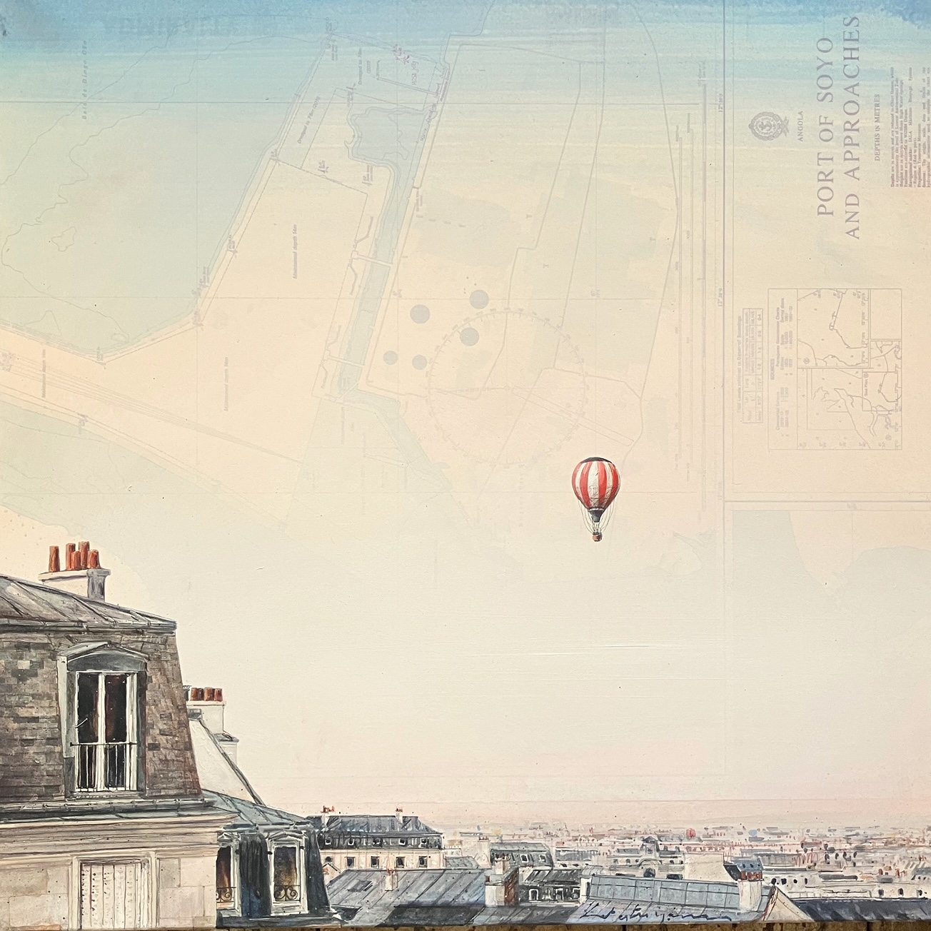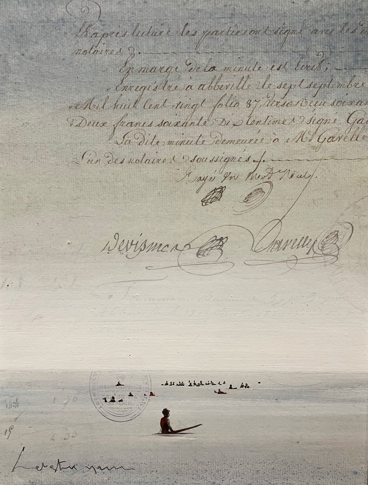 Technique mixte sur carte marine, marouflée sur toile.