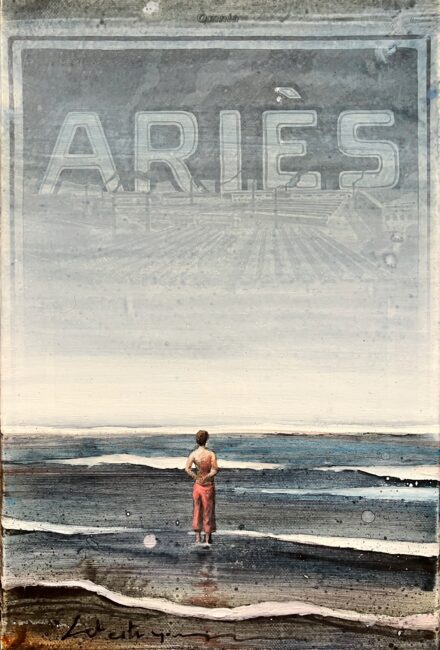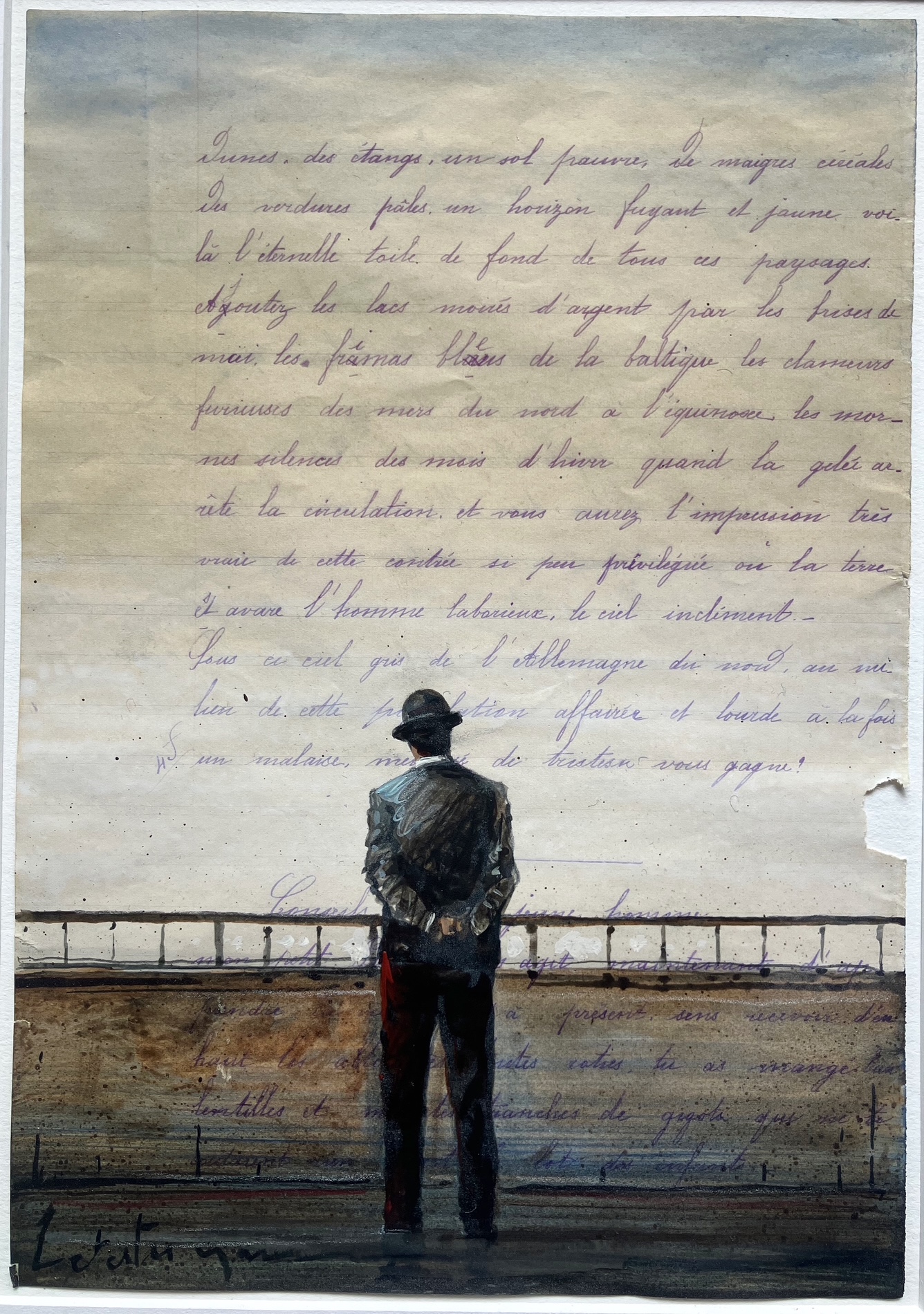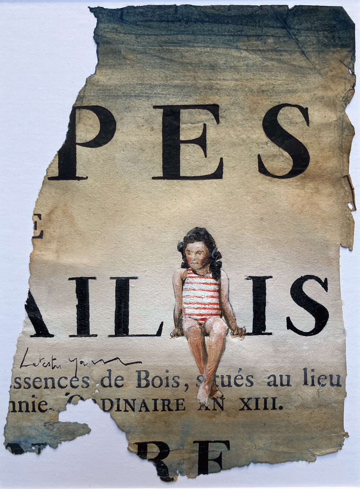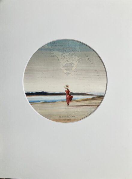 Technique mixte sur papier ancien 30x40cm avec passe-partout