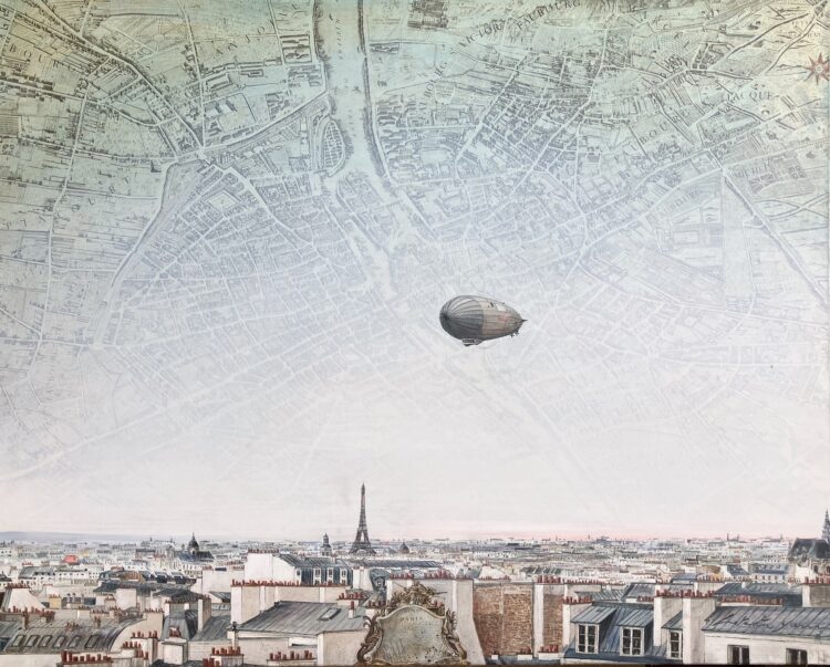 Technique mixte sur carte de Paris, marouflée sur toile.